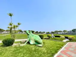 Three-dimensional sculptures such as watermelon fields, whales, frogs, and stone lions,