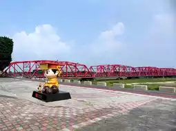 The Xiluo Bridge, which spans the Zhuoshui River between Yunlin County and Changhua County, was once listed as one of the eight scenic spots in Taiwan and was known as the "No. 1 Bridge in the Far East". The Xiluo Bridge was completed in December 1952 and officially opened to traffic in January of the following year. The bridge is 1,939.03 meters long and 7.32 meters wide. It uses a Warren through-bridge steel frame and concrete piers with 31 spans and 32 piers. In the early days, there was a special railway for the sugar industry on the Xiluo Bridge, which formed the phenomenon of railway and highway running parallel to each other. Later, the sugar industry railway was demolished on the grounds that it hindered traffic. Before the Taiwan Highway was widened, Xiluo Bridge was an important transportation hub. It was a must-pass place for vehicles traveling from the south and the north, and it also contributed to the prosperity of Xiluo Town. The convenience of Taiwan Highway and the widened Taiwan Highway have caused this once glorious bridge to gradually fade away. The bridge was closed to vehicles for a while, but was later opened to traffic. The fiery red color is the symbol of the Xiluo Bridge, and it carries the memories of countless drivers. In addition to being open to traffic, the bridge also provides value for sightseeing and allows the younger generation to know about the unprecedented grandeur of the Xiluo Bridge at that time. (20210918)