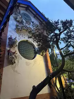 Passing through the main hall and the Holy Mother Hall of the Zhifa Palace, and heading back, the view suddenly shifts: the solemn temple atmosphere gives way to an elegant garden scene.