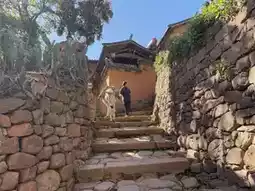 The houses here are all built against the mountain, and there are up and down stairs to enter the village, so donkeys become the means of transportation.