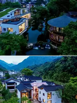 The settlement uses "landscape as the canvas, architecture as the brushstroke," blending the classical aesthetics of Hui-style white walls and black tiles with modern minimalist design. The designer incorporates Taoist philosophy, cleverly integrating courtyards, streams, and gardens, combining the Zen of Chinese courtyards with the wild luxury of cave houses and treehouses. Every floor-to-ceiling window is a frame capturing the sea of clouds, bamboo forests, and streams as flowing murals inside the rooms.