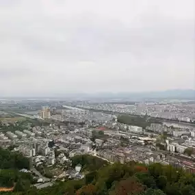 Reaching the highest point of Yushan rewards you with a breathtaking panorama of the ancient town below — rivers glistening in the sun, temples nestled among green hills, and winding streets full of history and life.
