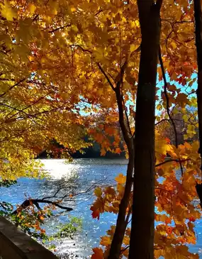 In October, the gentle sunlight falls softly on the lake surface, creating shimmering ripples 🌅