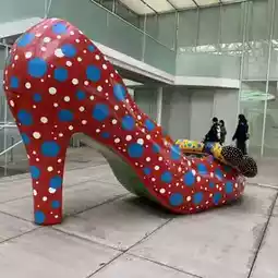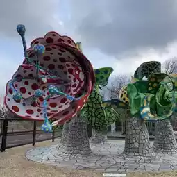 The entrance welcomes you with a large Yayoi Kusama flower in bright colors, and there is a second piece by her after entering the museum. The main museum building holds paintings of surprising subjects which change regularly. There are also many large size art works placed outdoor and you will need to follow the map to look for them - some were hidden in the wood and require a bit of effort to find.