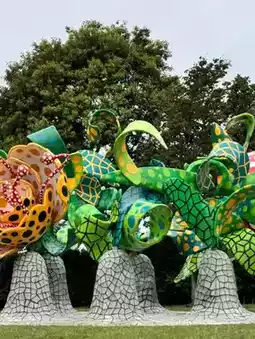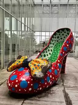 The artwork at the entrance is the work of artist Uematsu Keiji 🙆🏻 ♀️ Floating form a red 🫡 and also the photo on the ticket 🎫 🙊 We will hold it and hit the card with him 😂 And the admission ticket is quite cheap 😍 Only 320 yen has been entered to visit 🫶🏻🫶🏻
