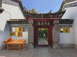 Nie Er's former residence and Nie Er Park are both near the Lao Ju Dian Restaurant. After the meal, we walked through Nanmen Street, Xinxing Road, and Beimen Street to visit Nie Er's former residence. The streets were filled with countless small merchandise stalls, snack stalls, and fruit stalls, crowded with people. Nie Er's former residence is located at No. 73 and 74 Yongdao Street, a two-story wooden and earthen structure where Nie Er's parents once rented and operated the 'Chengchun Hall' medical clinic, and where Nie Er grew up. The local government funded the renovation, and in 2011 it was opened as the Nie Er Former Residence Memorial Hall, introducing Nie Er's life, study, growth, and artistic career through pictures and texts. Five bronze plaques of various educational bases and one collaborative base plaque hang by the courtyard gate.