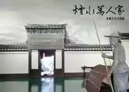 At the entrance of the museum, a figure of an old man in a straw raincoat and hat stands on a small boat, propelling it along Yuyao's mother river, the Yao River, passing through Yuyao's 'smoky water and thousands of homes'. Visitors enter the museum along this 'clear and long waterway'.