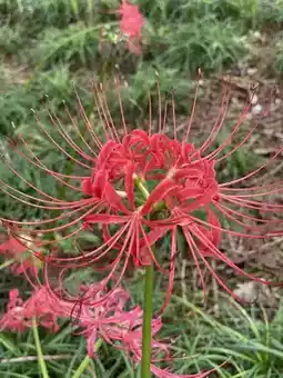 The red spider lily, also known as Lycoris radiata, is renowned for its unique growth habits. This plant blooms without leaves, and when leaves appear, there are no flowers, as if an insurmountable chasm separates them. Hence, it is named the 'red spider lily,' also known as the 'call of the other shore.' The flowers are mostly bright red, blooming in clusters, vibrant and exuberant, creating a strong visual impact.