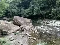 It was very quiet, with only the sound of the stream. The strange rocks, bamboo forest, and clear stream complemented each other. There were photo spots everywhere.