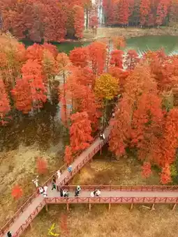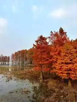 The metasequoia here has different scenery in different seasons. In spring, the new green leaves are full of vitality; in summer, the branches and leaves are lush, providing shade and cooling; in autumn and winter, the leaves change color, with golden, orange, and purple-red interwoven, reflecting the lake, green mountains, and blue sky, as beautiful as an oil painting, making it a popular tourist attraction recently, allowing people to feel the romance and beauty of autumn and winter.