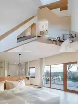 ❣️I think it is a white house, which is particularly conspicuous among the green mountains. The ceiling and floor are clean and simple, the windows are bright, and the tables, chairs and benches exude the aroma of wood. "