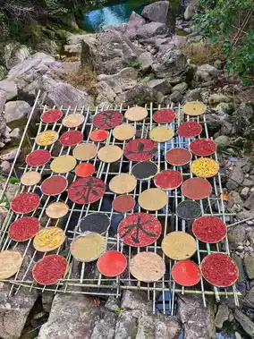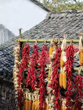 Just 1.5 hours from Ningbo, step right into the autumn of Siming Mountain. This 600-year-old ancient village is covered with "little lanterns," and the hills are dyed red by the "Diaohong" persimmons. Under the eaves of old houses with blue bricks and wooden roofs, red chili peppers and yellow corn are drying in bamboo trays, like nature spilled its paint palette!