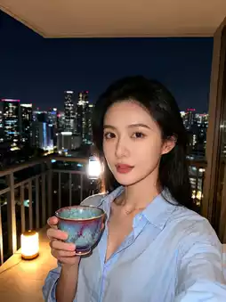 In the evening, we took "indoor ambiance photos" on the room's balcony: with the small balcony light on, we took mirror selfies using the flash, with the hotel's night view as the background. My bestie even used the room's Jun porcelain cup as a prop for a "holding a cup while gazing at the night view" shot, which turned out artsy and soft.