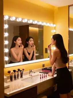 First, there's the "makeup-friendly zone": the bathroom features a 1.8-meter-wide full-length mirror surrounded by adjustable ring lights (with warm and cool settings). You can clearly see every detail while applying foundation or eyeshadow, no need to use your phone's flashlight for extra light. My bestie and I did our "blue hour makeup" together in front of the mirror: light apricot eyeshadow, soft pink blush, and a flattering mauve lipstick. We even joked about each other's eyeliner mishaps—it was so much better than squeezing in front of a tiny mirror in a small guesthouse.