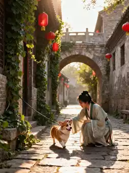 In the afternoon, we walked to Yuzhou Old Street, just 10 minutes from the hotel. The quiet street, free of traffic, was perfect for a leisurely stroll. With my corgi on a leash, we wandered along the cobblestone path, flanked by old houses covered in green vines. Shopkeepers occasionally popped out to greet us, saying, "What a cute corgi! Take a photo in front of my shop."