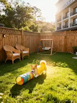 The moment we entered, my corgi went wild: running laps around the grass, wobbling on the swing, and playing hide-and-seek in the tunnel. Sunlight glistened on his golden fur, even the tip of his tail seemed to sparkle. I lounged on a wicker chair, soaking up the sun and scrolling through my phone, occasionally tossing a frisbee for him to fetch. This "relaxed vigilance" was a rare luxury for a pet owner.