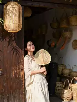 Wear light-colored cotton-linen (white, light gray, cream) to make bamboo shadows stand out. Avoid dark colors, which blend into the shadows. Add a light brown cotton-linen scarf (around the waist or shoulders for layering without blocking shadows). Opt for neutral-toned undergarments to prevent color show-through.