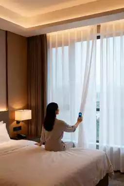 The room was packed with surprises! 🗣️! Voice control lets you control the lights and curtains, so you can lie in bed without getting up. The mattress is just the right firmness, so you can fall asleep in seconds after a tiring day of business. The pure cotton bedding is soft and comfortable. The bathroom has separate wet and dry areas, and hot water runs in 3 seconds. Free makeup remover pads and moisturizer are provided, so you don't have to worry about forgetting your skincare products!
