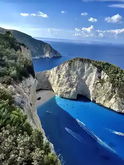 • To visit Navagio Beach, take a boat tour from the harbor and pass through the serene blue sea caves.