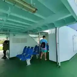 You can enjoy the scenery while feeling the breeze on the deck. And since the ferry only has vending machines, please buy some water at Tomarin before boarding the ferry😆