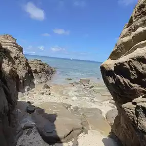 I noticed a cave, so I went inside and discovered that it actually led to the beach!
