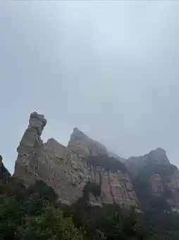 We have limited time, only visited Jiunvfeng Scenic Area (also the essence of Zhangshiyan) and kept climbing --- Laojun Ding observation deck overlooking the Taihang Mountains is indeed shocking, (about 1500 meters above sea level, photographed at 1490 road sign), downhill in turn passing --- Zhangshiyan Jiunvfeng (said to be the place where fairies descend), ----- One-meter cliff (my legs are trembling, really nervous, my lover is still very brave haha, friends with acrophobia, can fight against acrophobia), and Tianzhu (the location of the Taihang Mountain stamp), this way is to seriously absorb negative ions and enjoy the gifts of nature.