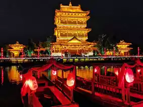 There are also costume experience activities in the ancient city . In the dimly lit ancient city, men and women dressed in Hanfu stand by the river or on the bow of a boat, watching the colorful lights illuminate the water, the lights dazzling the city buildings, and the steel flowers lighting up the night sky. Isn't this the dreamy and real scene