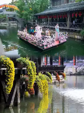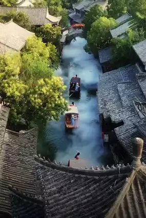 The night tour on a rowboat is a special feature of Tai'erzhuang Ancient City. Accompanied by the boatman’s folk songs, the boat glides on the river, very romantic;