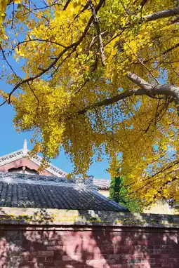 Next to Zezhou Dai Temple stands a ginkgo tree, one of the attractions here. According to experts, the tree is at least 6,000 years old, making it one of the top ten largest trees in Jincheng and unique in China. In front of the Dai Temple, the tree's crown spreads out like a giant umbrella. Originally, the tree had eight branches, but six were cut down in the early days of liberation to make desks and benches for the village school, leaving only two branches. In autumn, the leaves turn yellow, and from a distance, it looks like a money tree. Perhaps making a wish for wealth here will be effective.