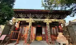 The four "story columns" in the temple The four stone plate dragon corridor columns are placed under the wooden carved moon beam bracket. On the four stone pillars, ten hollow dragons of different sizes are carved. The dragon bodies have various forms, either coiled, or leaping, flying up and down. The disc dragons are interspersed with carved electric mother Feng Bo and Thunder God Rain Master. The base supporting the rolling dragon column is four fierce round carved stone lions, which shine brightly with the giant dragon. These stone pillars are still distinct despite more than 800 years of ups and downs.