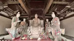 Located on the slopes of Xiaoshi Mountain southeast of Jincheng City, Qinglian Temple, the same filming location as Black Myth: Wukong, was our fourth stop of the day. The temple complex, divided into upper and lower sections, stands against the mountain, with the clear Danshui River flowing below. Its halls and pavilions are nestled among the lush greenery, and the surrounding mountains resemble lotus flowers emerging from the water, commanding a breathtaking view. It is one of the earliest temples of the Maitreya Pure Land Sect of Buddhism in China and is renowned as the "scholarly Qinglian, martial Shaolin." The six Tang Dynasty painted sculptures in the Maitreya Hall of the lower temple are unparalleled and unique. The four "Corner Gods" in the Sutra Repository of the upper temple are the only ones in the country and are jokingly called the "hardest workers" of Qinglian Temple. But the Corner Gods are not just chosen laborers; they are the pillars of Qinglian Temple, bearing the weight of the thousand-year-old temple through the storms of time.