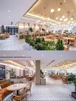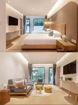 As soon as I stepped into the hotel, I was attracted by its unique design. The hotel is inspired by tropical islands, with every detail revealing a perfect blend of nature and modernity. My room faces a tranquil lake; waking up in the morning and drawing the curtains, I see mist swirling over the lake, as if in a fairyland. The room’s decor is simple yet cozy, with wooden furniture paired with soft lighting, making it especially comfortable.
