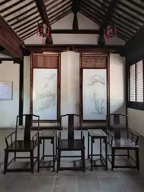 Plum Blossom Hall in Xiangshan is located near the parking lot at the top of Xiangshan Scenic Area. It consists of two rows of single-story buildings connected by a long corridor, featuring dark tile roofs and gray walls, exuding a simple and dignified charm. The great Song Dynasty literary master Su Dongpo once stopped and stayed here. In the center of the front hall, slightly towards the back, there is a folding screen with a plaque above it inscribed with "Fragrance Gives Birth to a Cluster of Jade." On the dark red pillars on both sides, a couplet is carved: "Spring follows the fragrant grass, blooming for a thousand years; people are as pure as plum blossoms." In front of the screen is a portrait of Xu Xiake, with an inscription on the base explaining Xu Xiake's connection to Xiangshan. The folding screen in the rear hall features a large relief depicting the main scenic spots of Xiangshan. Under the eaves behind Plum Blossom Hall, there is also a plaque featuring calligraphy by Emperor Qianlong, recording his words: "The river and sky are of one color." On both sides, there is another couplet: "The old poet does not know the style of plum blossoms, but looks instead at the green leaves and branches." Behind the building is a pond with clear rippling water, said to be the pool where Su Dongpo washed his inkstone and brushes after writing poetry and painting, known as the "Inkstone Washing Pool."