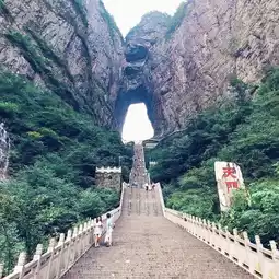 The cave is on the precipices and is over 1260 meters elevation, the height of the cave is 131.5 meters and the width is about 50 meters. The cave is like the door to heaven; it looks like the junction of common world and the place where god lives. Guest may need to walk up 999 steps to reach the cave, it will be tried but lucky, because '9' is the biggest number in Chinese culture and 999 means an eternal/forever life. Or you can take the world longest escalator over 5 times to get to the cave and another 7 times to get to the peak!