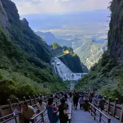 I would recommend visiting the Tianmen Mountain, as it's easily one of the most famous landmarks. Take the escalators up (unless you've got enough energy to take the stairs) and you will be able to get some great pictures from the top. Then, I recommend walking down the steps slowly and take in the view.