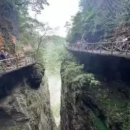 If you are up to a thrill, you can walk the narrow path that clinging to Tianmen Mountain’s vertical cliffs. There is nothing underneath the walkway, but you can look down at the beautiful valley. Be prepared to walk for about one hour and a half since the loopside is around 1.6 kms long.