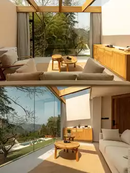 ✨Design concept: The hotel faces the pond, backed by the canyon, with a closed private courtyard structure, located in the deep forest, with the design concept of "extremely simple and quiet", the front and back of the building are all floor-to-ceiling glass, any corner of the room can open the window to see the scenery, truly let guests experience being in nature and integrate into nature. In such an environment, you will definitely feel deep tranquility and relaxation.