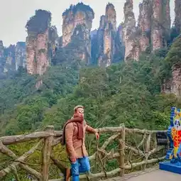 I went to Zhangjiajie province and had a solo trip tour in China for 4 days and 5 nights. I had the opportunity to take a glass elevator, which cost 700 yuan, to go up to the Avatar mountains. The glass elevator ride took just over a minute, but it allowed me to experience going through a cave to reach a viewpoint. The weather was very cool and comfortable, just like in the movie Avatar. The mountains were incredibly beautiful, and then I walked up further for kilometers but didn't feel tired because the path sloped down. It was a once-in-a-lifetime experience to truly encounter these mountains.