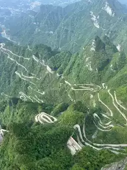 🚠 Begin your journey with a ride on the world’s longest cable car, stretching nearly five miles from the city of Zhangjiajie to the mountain’s summit. The ride provides breathtaking views of the dense forests, steep cliffs, and the winding Tongtian Avenue, known as the "Avenue Leading to the Sky," with its 99 sharp bends.