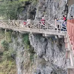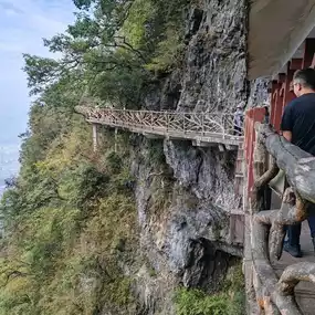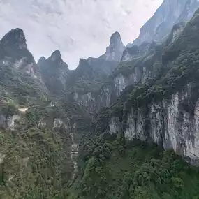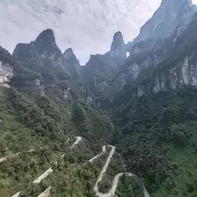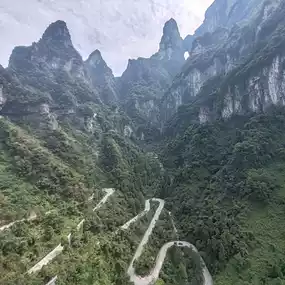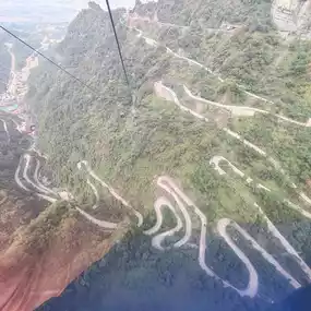 From the city of Zhangjiajie, you can take the world's longest cable car up to the top of the mountain with ease. The view is worth millions. Below, you can see the winding road for those who drive up the mountain. Then, walk through various nature trails until you reach the Heaven's Gate. You can take the escalator down or, if you prefer, walk down the 999 steps through the Heaven's Gate. There are many ways to travel this route; some may choose to walk up to the Heaven's Gate and take the cable car down.