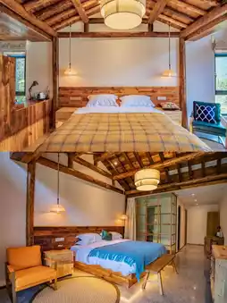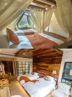 🛏The rooms are spacious and well-laid out, with floor-to-ceiling glass windows and an open balcony design, making you feel like you are one with nature. Wake up in the morning to the sound of birds, draw back the curtains, and you'll see lush green mountains and swirling clouds, like a landscape painting. At night, you can lie on the balcony lounge chair and watch the stars, which is extremely romantic.