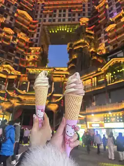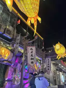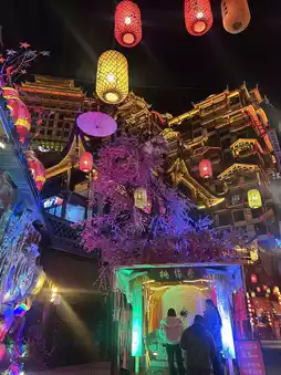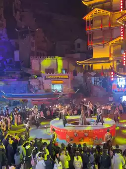 This building is known as the 'gate of heaven' and has beautiful lights all over the city. There are 7-8 shows to watch, so beautiful it's like something out of a Chinese movie. The 5D light and sound show is so amazing. I highly recommend going in. There's food inside. It feels like you're walking around an ancient Chinese city.