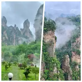 🏞 Must-Visit Attractions: Zhangjiajie National Forest Park (Entrance Fee: 227 RMB): Yuanjiajie: The original model of the floating mountains "Hallelujah Mountains" in the movie Avatar, with mysterious platforms and the Qian Kun Pillar among many unique peaks.