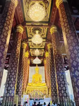 The highlight is Phra Phutthanimit Mongkhon or "Buddha statue in royal attire". It is believed that whoever comes to worship and ask for blessings for work and life will have only success and prosperity. 🙏