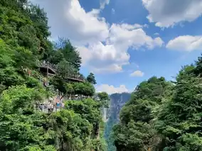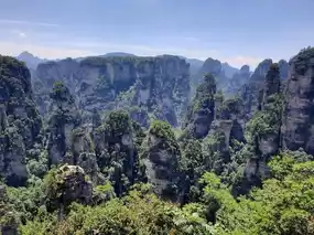 Walk through Yuanjiajie from the direction of Mihun Terrace in the opposite direction to the First Bridge under Heaven. Take an eco-friendly car from the parking lot of the First Bridge under Heaven to the Tianzi Mountain Cableway