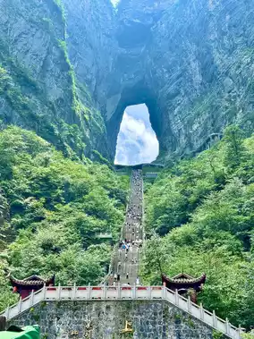 Tianmen has been a long time bucket-list destination and I finally got done with it. I would suggest taking package A, finishing off the West Line quickly, and directly taking the Transmountain Escalator to Tianmen Cave instead of going on the East Line, atleast during summer. Nothing too beautiful, even at the Yu Hu Peak, to be honest. Lingquan temple was commercialised as well. The 999 Steps on the other hand is super fun as an activity amongst fit folks, else, just go ahead and take the escalator down for 32RMB pp. #tianmencave