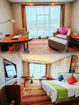 Just arrived in Zhangjiajie today and checked into the Huatian Hotel (Tianmen Mountain Branch). The hotel is grand and spacious, with large, clean, and comfortable rooms. It would be even better if the lighting were brighter. The hotel is environmentally friendly, even the slippers are eco-friendly, but they are disinfected and packaged properly. All necessary toiletries are provided. The hotel is located right across from the Citizen Square, offering a nice view. Along the riverbank, there’s a walking trail where you can enjoy the scenery while taking a stroll—truly refreshing! I went for a walk and, feeling tired, returned to the hotel to rest for a while before heading out again in the evening.