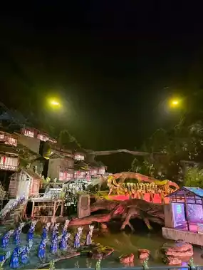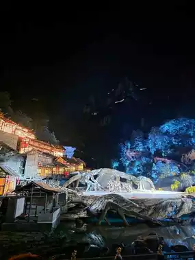 * **Grand-scale decorations:** A village of over 10 authentic Tujia ethnic huts has been built on the mountain slopes. These structures change color thanks to special lighting, creating a magical atmosphere.