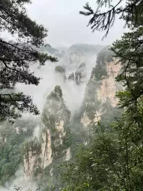 Back in Zhangjiajie again — but this time, the rain was falling 🌧️.