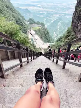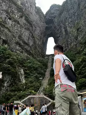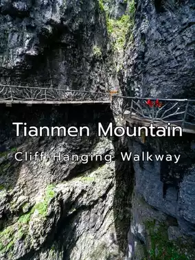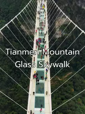 🛤️ เดินบนทางเดินริมหน้าผา “Skywalk” ที่ตัดผ่านหน้าผาสูงชันสุดระทึก (Cliff-Hanging Walkway) 👣 ท้าความกล้าไปกับ Glass Skywalk (Glass Skywalk) ทางเดินกระจกใสที่ลอยเหนือหุบเหวลึก 🌉 ถ่ายภาพสุดอลังกับประตูสวรรค์ Tianmen Cave (Tianmen Cave) ที่ธรรมชาติสร้างขึ้นอย่างน่าทึ่ง